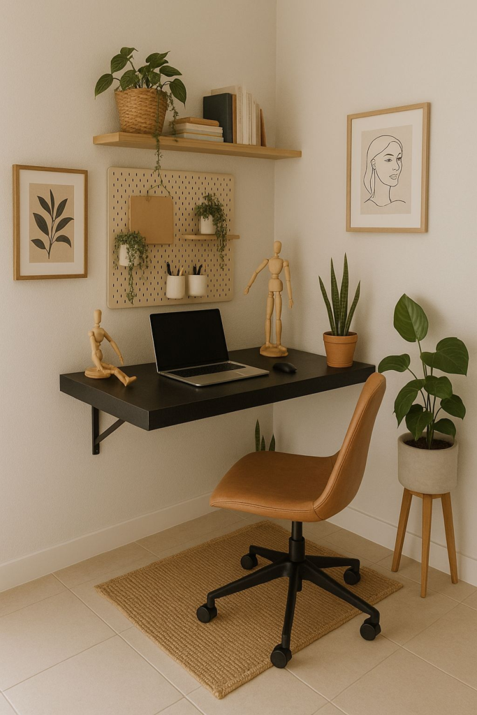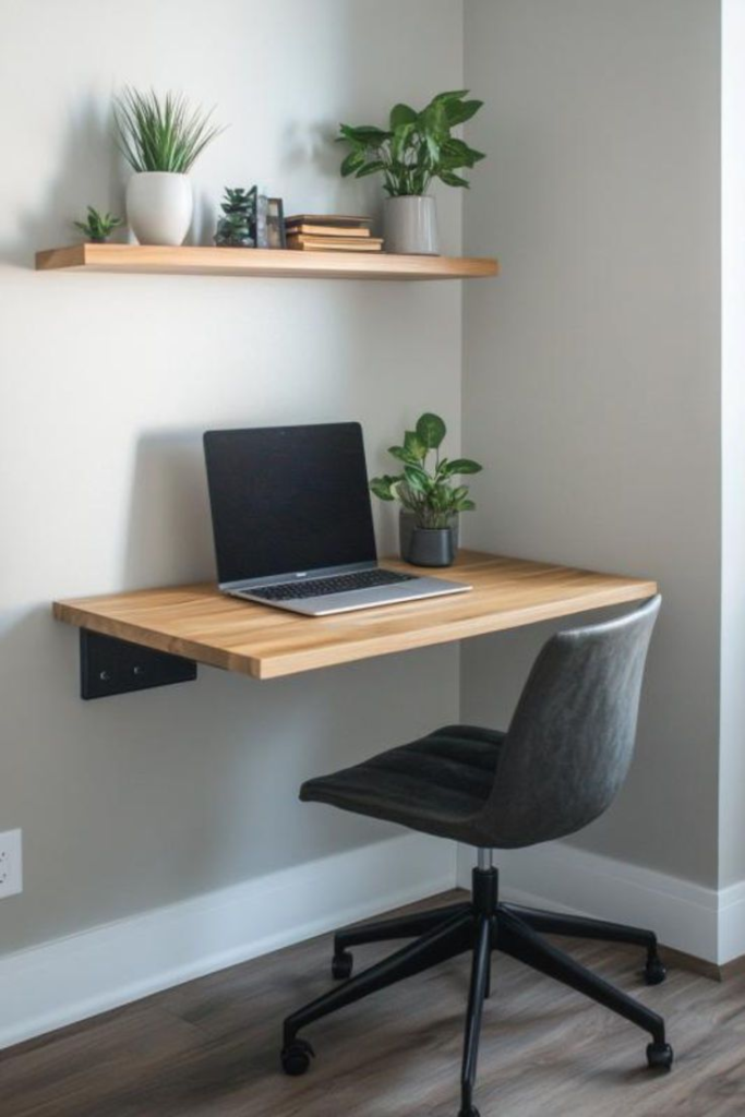 A functional micro-office requires approximately 4×4 feet minimum—enough for a small desk and chair with clearance to move. Even alcoves measuring 3×5 feet can accommodate wall-mounted desks with creative planning.