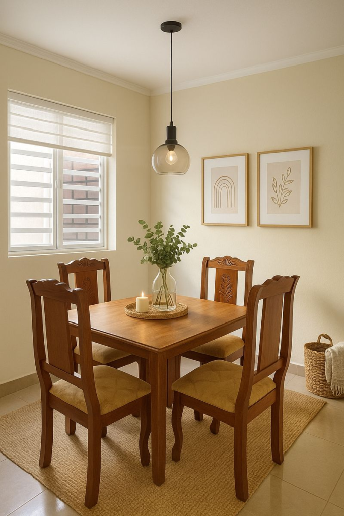 Sometimes the smallest changes make the biggest difference. Fresh paint costs little but transforms a space completely. Swapping out light fixtures updates the entire look without breaking the bank. Textiles like curtains, chair cushions, and table runners add color and pattern affordably and can be changed seasonally. Plants bring life and freshness to any space for just a few dollars. Focus your budget on pieces you’ll use daily—a quality table or comfortable chairs—and save on purely decorative items.