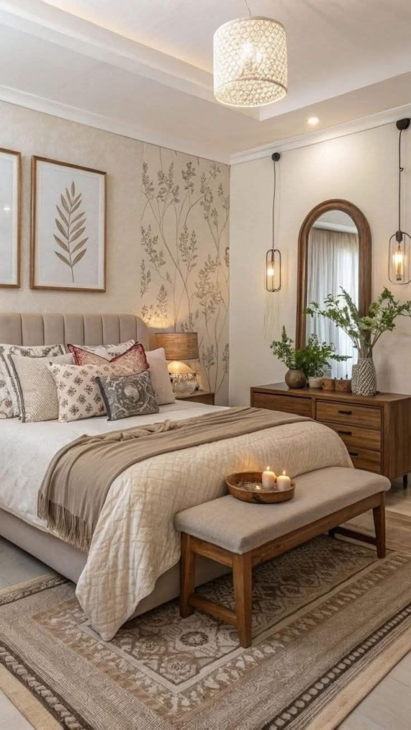 Wallpaper creates immediate visual impact, establishing your bedroom’s mood and character within hours. A single accent wall can completely reimagine your space without the commitment of painting every surface. The variety of textures—from fabric-like finishes to embossed patterns—adds dimensional interest that flat paint cannot achieve. Wallpaper also provides an opportunity to introduce bold patterns or colors you might hesitate to commit to with paint.